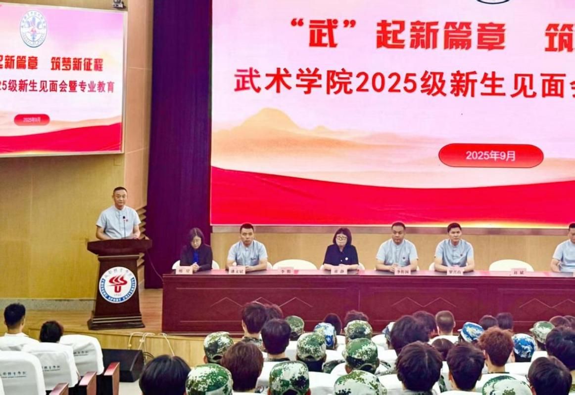9月24日,武术学院2025级新生见面会暨专业教育在行健楼同传室如期举行。武术学院院长赵斌、党委书记罗兴山、副院长李传国,各教研室及科室负责人,新生班主任、主专修教师与186名新生齐聚一堂,共启武术求学新篇。