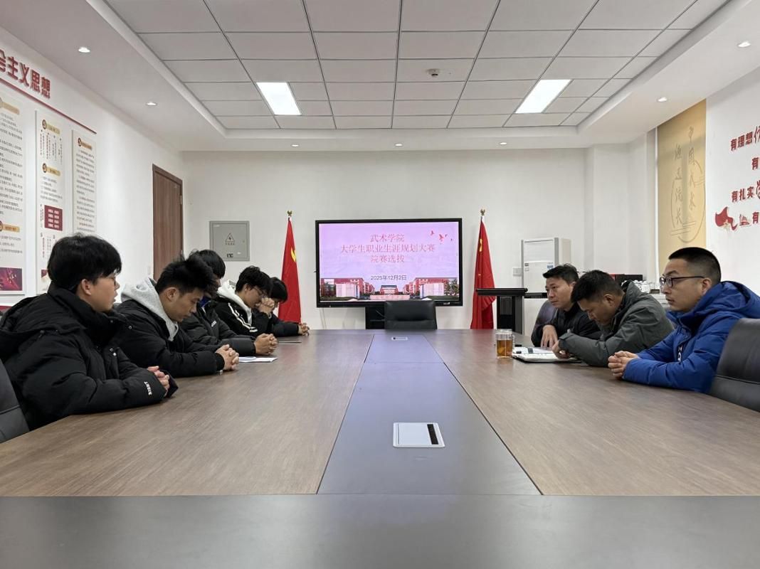 比赛中,参赛学生围绕自我认知、职业环境分析、职业目标确立、实施计划等方面,结合武术专业特色,展现职业生涯规划方案。评委们从方案逻辑性、可行性及学生表达能力等维度综合评审,最终选拔出2名成长赛道和3名就业赛道同学,代表学院参加学校复赛。